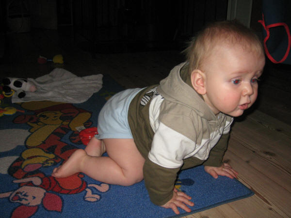 Marinus har lært at kravle for 2 dage siden og nu er han 9