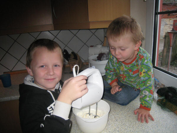 Kristian laver flødeskum, mens Marinus er klar med skeen....